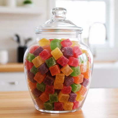 Introducing Jub-Jub gummy candy, the ultimate treat for candy lovers! Bursting with vibrant colors, these delightful gummy squares are designed to brighten your day, satisfy your sweet cravings, and bring a touch of magic to every moment. Each piece is dusted with a light sprinkle of granulated sugar, making them irresistibly mouth-watering and a feast for your taste buds. Jub-Jub candies are a cheerful blend of fruity flavors that will leave you craving more.
